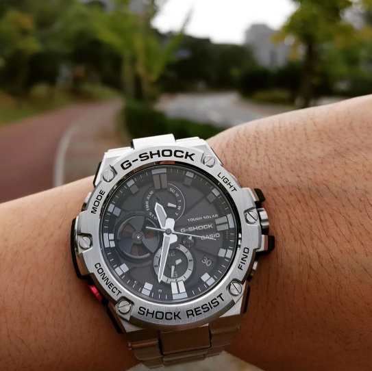 Релиз сентября 2017 года из серии G-STEEL. Новый, еще более тонкий корпус из стали и полимера, аналоговый циферблат, появление секундной стрелки и подзаводной головки, — все это визуально выделяет часы GST-B100 от своих собратьев по серии. На борту модель на стальном браслете имеет: солнечную батарею, технологию Bluetooth для синхронизации с вашим смарт-фоном, подсветку стрелок и циферблата и еще более десятка функций. Индикатор в виде турбины отображает уровень заряда батареи и состояние будильника. В этой коллекции дизайн G-SHOCK приближается к классическому образу механических наручных часов, при этом сохранив уникальную джишоковую начинку, что делает эти часы несравнимо прочнее и функциональнее, чем их механические собратья.