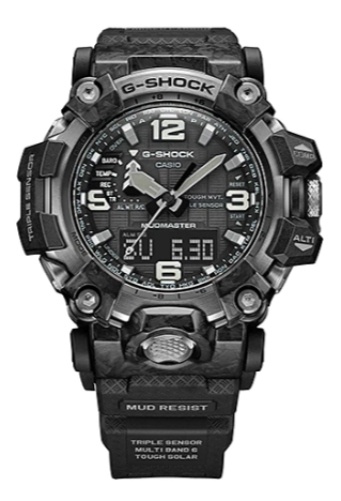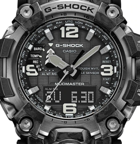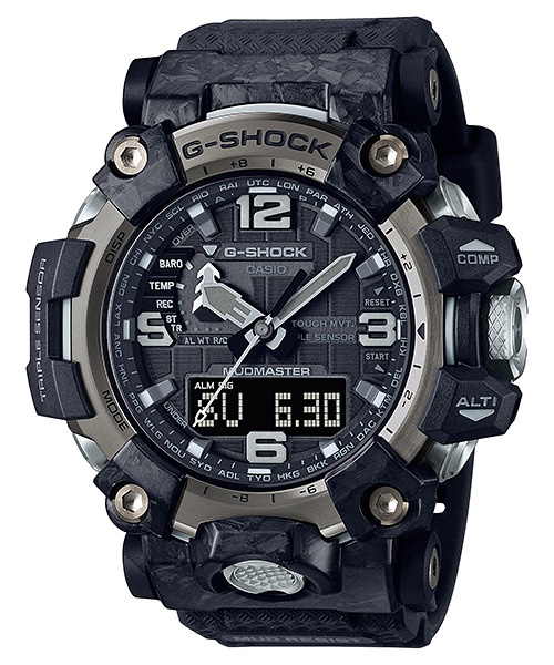 Топовый релиз конца 2021 года от G-Shock — флагманские сверх-функциональные джишоки из серии MUDMASTER в обновленном корпусе GWG-2000 в стелс-расцветке. Данная модель в черном полимерно-карбоновом корпусе являет собой эволюционное развитие предыдущей версии флагманских джишоков GWG-1000 и получила еще более жесткий и агрессивный дизайн, карбоновый ультра прочный корпус, стальной безель и еще большую степень защиты от пыли и грязи. Модель по-прежнему является одной из самых массивных среди всех джишоков, хоть и стала на пару миллиметров тоньше своих предшественников. Помимо превосходного брутальнейшего дизайна и лучших материалов, на борту вы найдете: термометр, барометр, высотомер, цифровой компас, график набора высоты, солнечную батарею, автоматическую радио-синхронизацию с атомными часами на разных континентах, сапфировое стекло с антибликом и еще более десятка функций. Собираются часы GWG-2000 в Японии на высоко-технологичном производстве CASIO в Ямагата. Напомним, что благодаря технологиям абсолютной пыле- и грязеустройчивости, а также защите от самых мощных вибраций, модели серии MUDMASTER можно эффективно использовать в самых агрессивных условиях. Интересно, что получаемая при производстве часов карбоновая текстура корпуса является уникальной для каждой модели и вы не встретите две одинаковых модели с одинаковой текстурой.