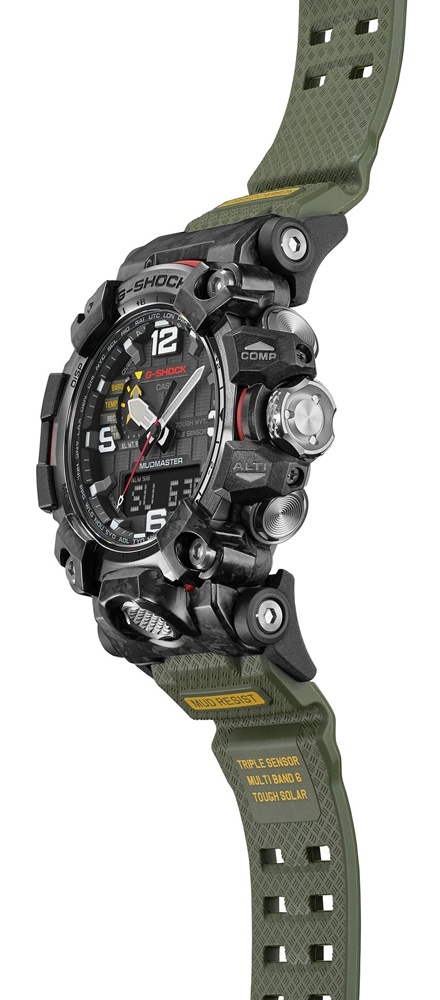 Топовый релиз конца 2021 года от G-Shock — флагманские сверх-функциональные джишоки из серии MUDMASTER в обновленном корпусе GWG-2000 в стелс-расцветке. Данная модель в черном полимерно-карбоновом корпусе являет собой эволюционное развитие предыдущей версии флагманских джишоков GWG-1000 и получила еще более жесткий и агрессивный дизайн, карбоновый ультра прочный корпус, стальной безель и еще большую степень защиты от пыли и грязи. Модель по-прежнему является одной из самых массивных среди всех джишоков, хоть и стала на пару миллиметров тоньше своих предшественников. Помимо превосходного брутальнейшего дизайна и лучших материалов, на борту вы найдете: термометр, барометр, высотомер, цифровой компас, график набора высоты, солнечную батарею, автоматическую радио-синхронизацию с атомными часами на разных континентах, сапфировое стекло с антибликом и еще более десятка функций. Собираются часы GWG-2000 в Японии на высоко-технологичном производстве CASIO в Ямагата. Напомним, что благодаря технологиям абсолютной пыле- и грязеустройчивости, а также защите от самых мощных вибраций, модели серии MUDMASTER можно эффективно использовать в самых агрессивных условиях. Интересно, что получаемая при производстве часов карбоновая текстура корпуса является уникальной для каждой модели и вы не встретите две одинаковых модели с одинаковой текстурой.