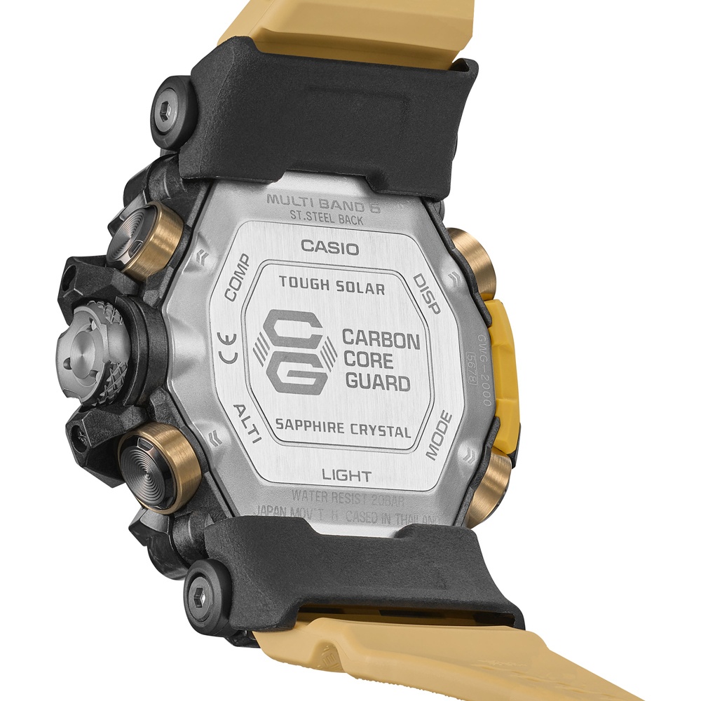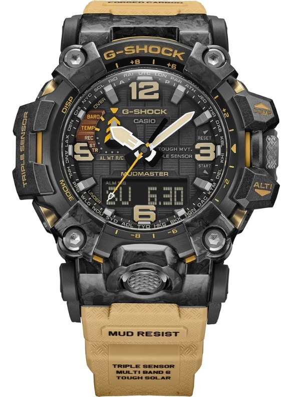 Топовый релиз конца 2021 года от G-Shock — флагманские сверх-функциональные джишоки из серии MUDMASTER в обновленном корпусе GWG-2000 в стелс-расцветке. Данная модель в черном полимерно-карбоновом корпусе являет собой эволюционное развитие предыдущей версии флагманских джишоков GWG-1000 и получила еще более жесткий и агрессивный дизайн, карбоновый ультра прочный корпус, стальной безель и еще большую степень защиты от пыли и грязи. Модель по-прежнему является одной из самых массивных среди всех джишоков, хоть и стала на пару миллиметров тоньше своих предшественников. Помимо превосходного брутальнейшего дизайна и лучших материалов, на борту вы найдете: термометр, барометр, высотомер, цифровой компас, график набора высоты, солнечную батарею, автоматическую радио-синхронизацию с атомными часами на разных континентах, сапфировое стекло с антибликом и еще более десятка функций. Собираются часы GWG-2000 в Японии на высоко-технологичном производстве CASIO в Ямагата. Напомним, что благодаря технологиям абсолютной пыле- и грязеустройчивости, а также защите от самых мощных вибраций, модели серии MUDMASTER можно эффективно использовать в самых агрессивных условиях. Интересно, что получаемая при производстве часов карбоновая текстура корпуса является уникальной для каждой модели и вы не встретите две одинаковых модели с одинаковой текстурой.