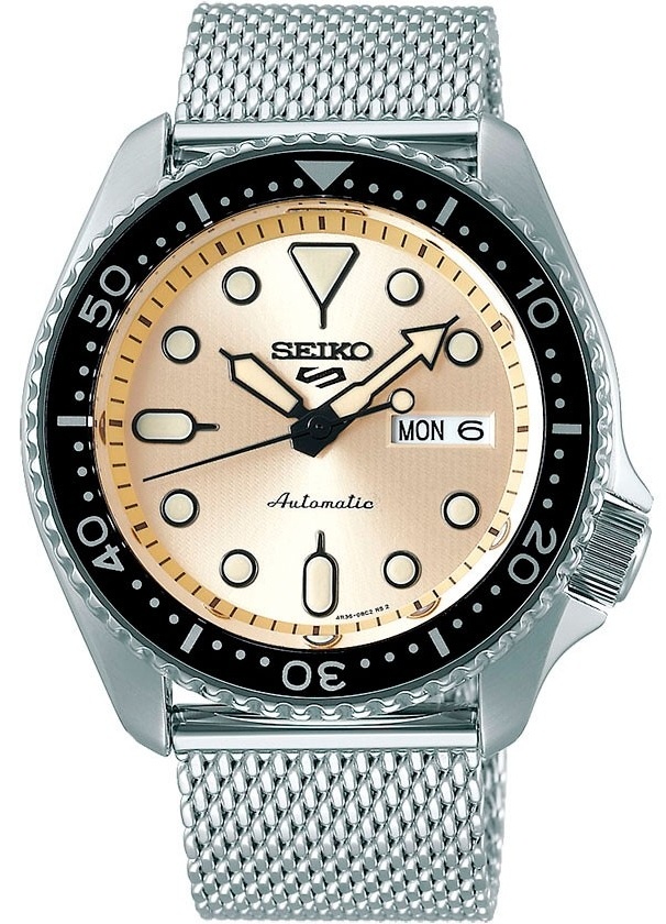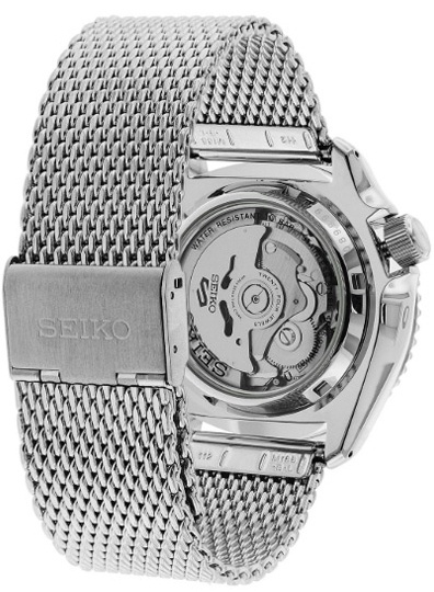 Механические наручные часы с автоподзаводом и возможностью ручного завода Seiko SRPE75K1 коллекции Seiko 5 Sports. Калибр механизма — 4R36. Запас хода более 40-ка часов. 21 600 полуколебаний в час. Количество камней — 24. На данной модели отображается текущая дата и день недели. Функция стоп-секунда (остановка секундной стрелки для установки точного времени). Стрелки и метки покрыты люминесцентным напылением LumiBright (светятся в темноте). На данную модель установлено минеральное стекло повышенной прочности Hardlex Crystal. Стальной браслет с миланским плетением. Вращающийся безель. На корпус частично нанесено стойкое PVD покрытие. Прозрачная завинчивающаяся задняя крышка часов. Водонепроницаемость WR100 (10 атм).