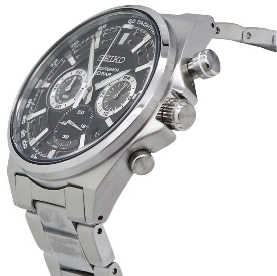 Стильный и надежный японский хронограф в стальном корпусе станет отличным помощником в вопросах времени. Часы-хронограф с секундомером и тахиметром. Секундомер до 1ч, точность 1/5с. 24-ти часовой формат времени отображается на отдельном циферблате. Двухуровневый циферблат украшен декоративным узором в виде горизонтальных рельефных линий и стильными прорезями в зоне меток. Стрелки и метки в виде штрихов. Окошко даты находится между отметками 4 и 5 часов. Рифленая заводная головка с защитой. Завинчивающаяся задняя крышка. Браслет с раскладывающейся застежкой. Застежка с системой блокировки.