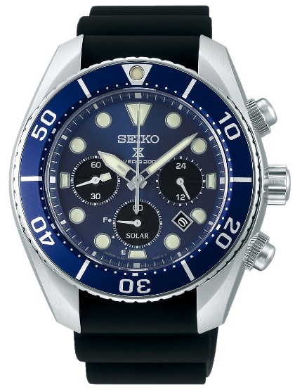 Стильный мужской хронограф Seiko из серии Seiko Prospex в черно-синей расцветке способен радовать своего владельца не только отличным внешним видом, но и великолепной тактильностью на вашем запястье. Модель выполнена в прочном стальном корпусе на мягком и износостойком силиконовом ремешке, а синий циферблат часов защищает сверхпрочное сапфировое стекло. Отдельно стоит отметить наличие в модели технологии Seiko Solar: благодаря наличию солнечной батареи, часы способны накапливать энергию, заряжаясь от любого источника света и не требуя замены батареи даже раз в несколько лет. Добавьте к этому водозащиту в 200 метров, отображение текущей даты, хронограф на 60 минут с точностью до 1/5 секунды и, кажется, перед нами идеальная модель кэжуал часов на каждый день. Как подобает хронографу, секундная стрелка вынесена на субциферблат у девяти часов, а стрелка хронографа остается неподвижной в режиме отображения текущего времени.