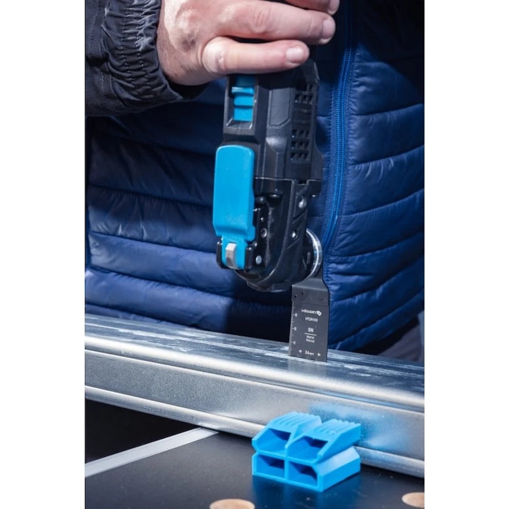 Это пильное полотно предназначено для установки на многофункциональный инструмент (мультитул), такой как HT2E230-0MT, и позволяет резать черные и цветные металлы, ПВХ и дерево с гвоздями.