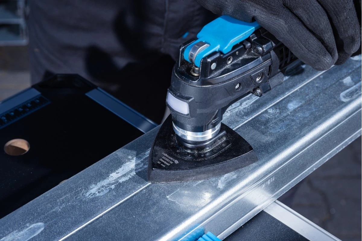 Шлифовальная пластина с треугольником на липучке (дельта) предназначена для установки на многофункциональный инструмент (мультитул), например, HT2E230-0MT.