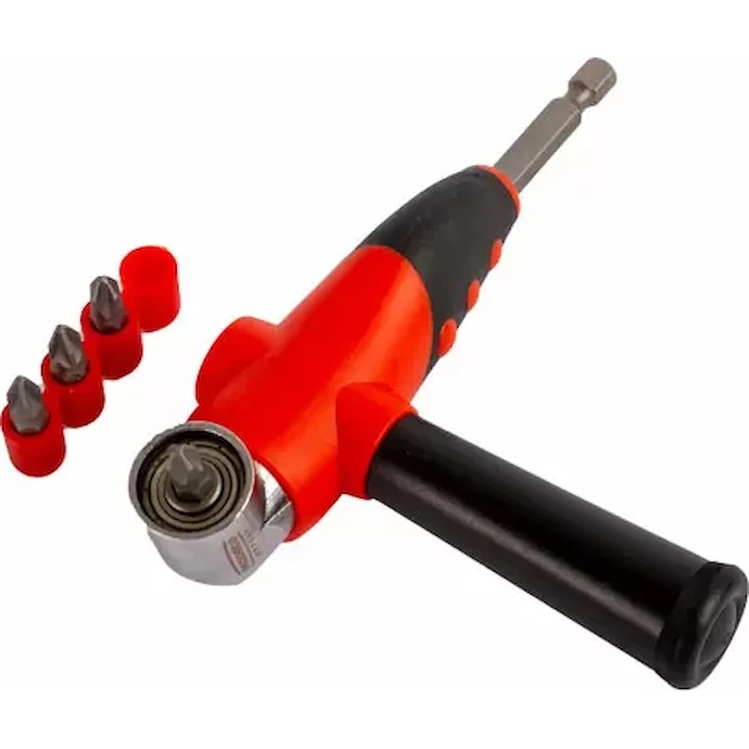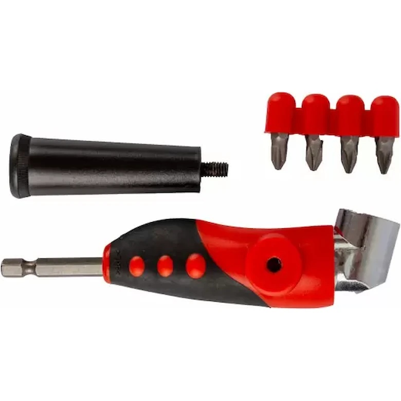 Удлинитель угловой для бит с типом шлица PH/PZ — это специализированный инструмент, который позволяет работать с шурупами в углах и других труднодоступных местах, где прямой доступ инструментом ограничен. Удлинитель оснащён угловым механизмом, который принимает биты с крестообразными шлицами Phillips (PH) и Pozidriv (PZ), обеспечивая удобство и гибкость в работе.