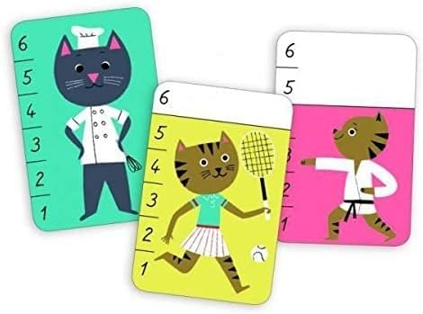 Карточная игра Бата-Мяу от Djeco — увлекательная настольная игра на внимательность и сообразительность с изображениями кошек. В процессе игры ребенка можно обучить счету, так как ему придется выбирать наибольшее число — самого высокого кота.