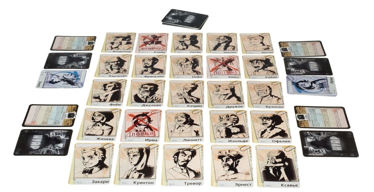 Комплектация50 карт подозреваемых, 50 карт доказательств, 35 карт принадлежности, 30 жетонов, правила игры