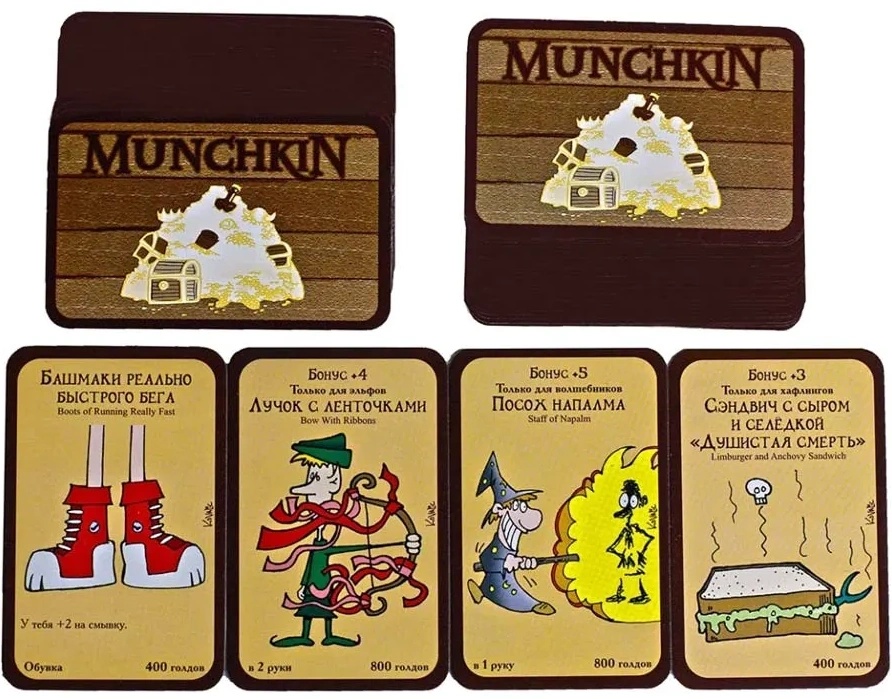 Игра "Манчкин" – локализация настольной карточной игры "Munchkin". На русском языке игра, как ни старайся, приобретает новое звучание, но остаётся по-прежнему азартной, динамичной и злорадной. Ролевое зубоскальство по простым, но местами намеренно туманным правилам подвергает насмешкам благородных эльфов, мудрых магов, отважных воинов и мохноногих хафлингов.