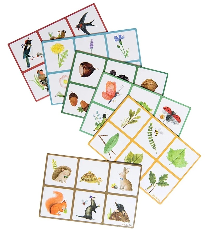 Лото природы с привлекательными иллюстрациями сада и природы, напечатанными на 36 карточках и 6 двусторонних досках. Найдите все картинки на доске, по очереди переворачивая карты, и выиграйте игру! Идеально подходит для игры с семьей или с друзьями.