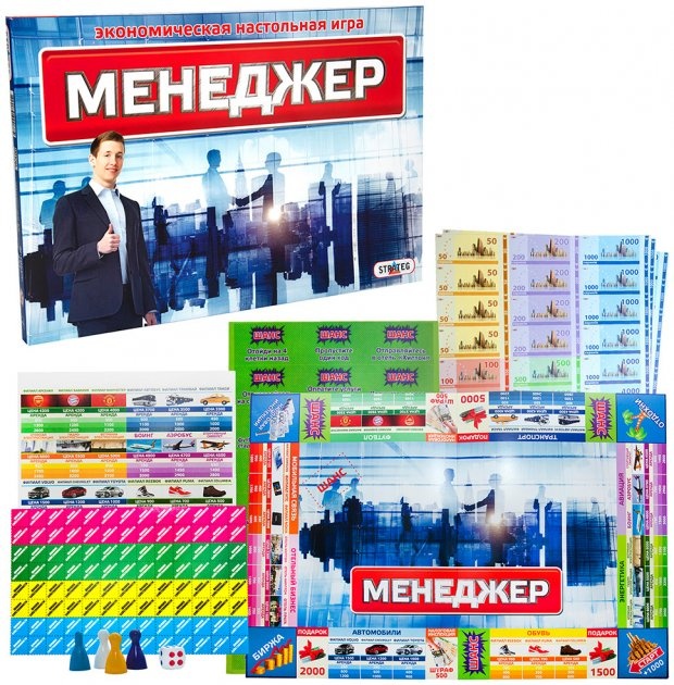 «Менеджер» (Strateg 355) – это увлекательная настольная игра, в которую с удовольствием играют с семьей и друзьями. Производитель создал игру яркой и насыщенной, такая вещь сразу привлекает внимание детей и вызывает желание быстрей приступить к делу. Игра подходит для детишек от шести лет, так как содержит мелкие детали и требует определенных навыков. В такой игре пригодятся все умения и даже больше – логика, счет, аналитика,способность мыслить стратегически, немного ловкости и хитрости, а также, конечно, необойтись без везения.