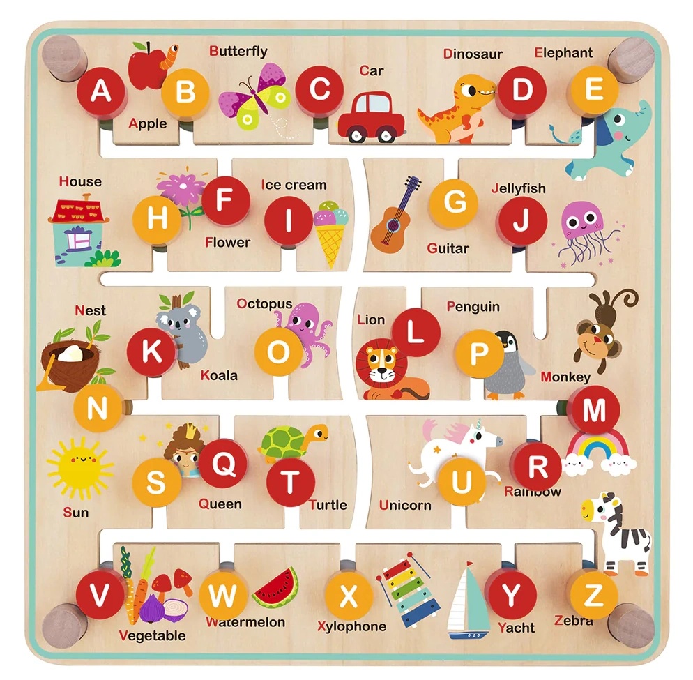 Интерактивная двусторонняя деревянная доска от бренда TooKY TOY — инновационная и развивающая игрушка. На одной стороне доски находится красочная головоломка с фермой , в которой дети должны сортировать животных и распределять их по соответствующим загонам и конюшням. На второй странице представлена увлекательная игра с алфавитом , в которой дети учатся расставлять буквы от А до Я. Игрушка способствует развитию навыков решения проблем, распознавания форм, цветов и изучения букв.