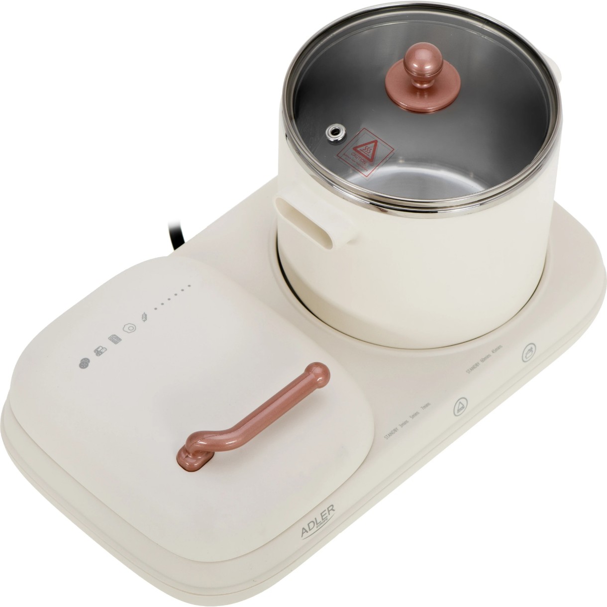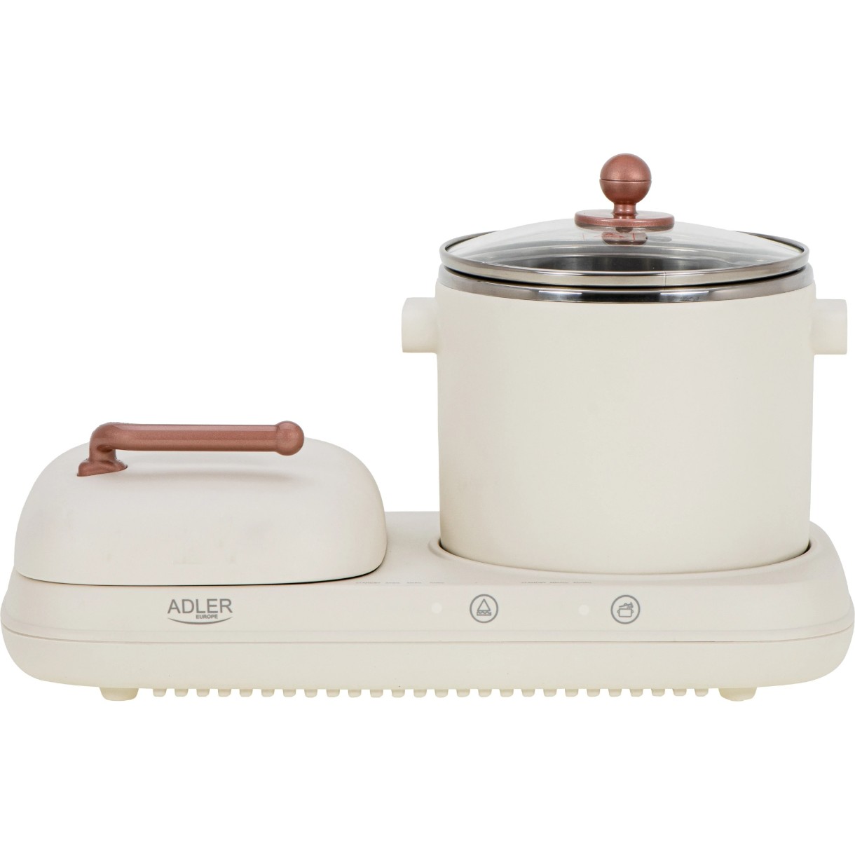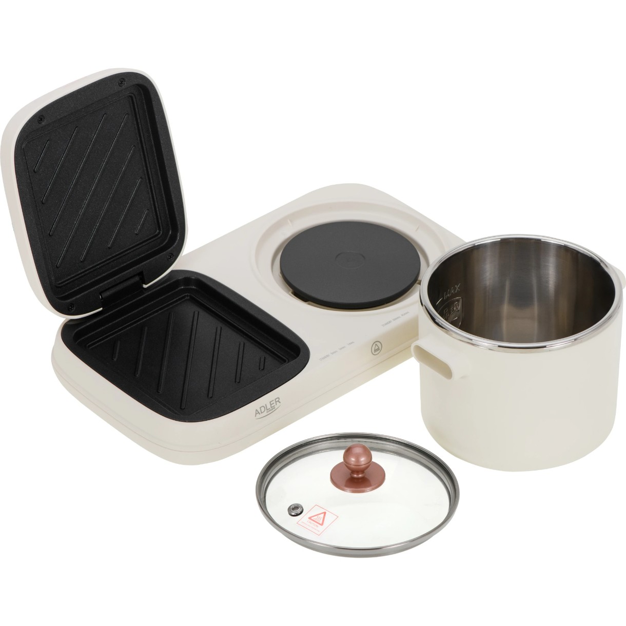 Adler AD 6421 2-в-1 Завтрак Станция сочетает в себе функциональность и ретро-очарование в компактном кремовом дизайне, идеально подходящем для любой кухни. Независимо от того, готовите ли вы завтрак или ищете универсальный прибор для небольшой кухни, эта завтрак станция является идеальным выбором.