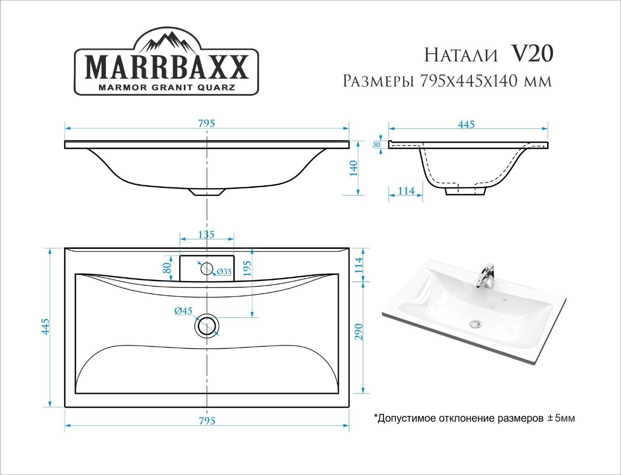 Размеры795x445x140 мм