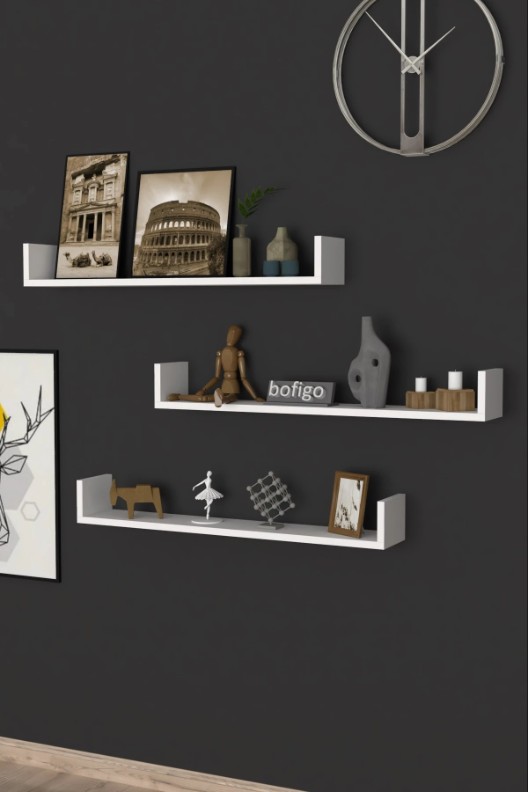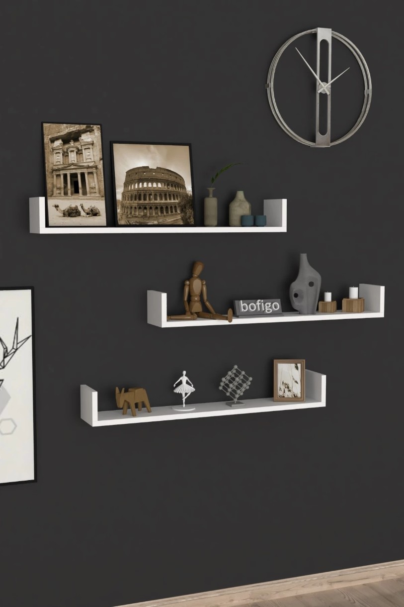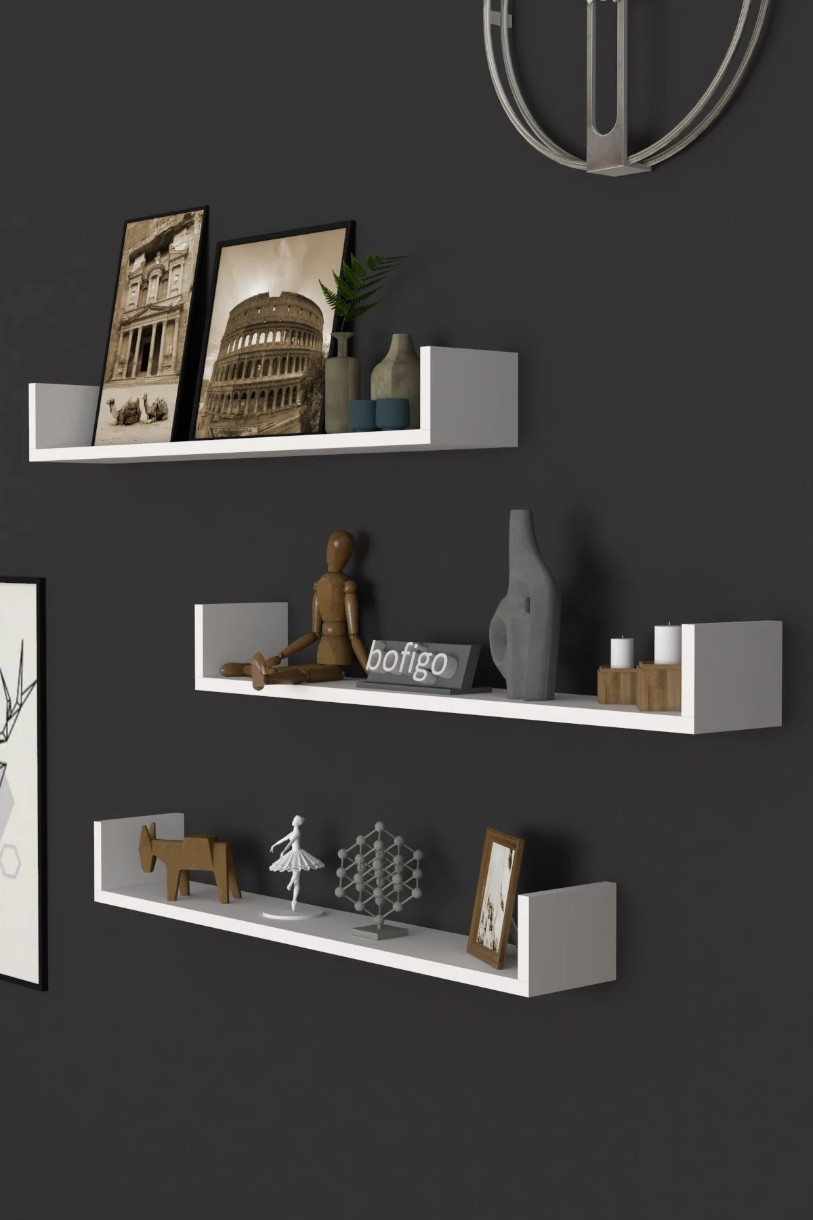 Набор из 3 навесных полок — это практичное и современное решение для организации и декора пространства в гостиной, спальне, офисе или кухне. Конструкция типа «парящие полки» создаёт лёгкий и минималистичный вид, экономя пространство и дополняя интерьер.