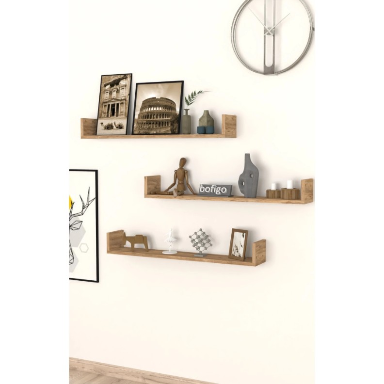 Комплект из 3 полок позволяет создавать различные декоративные композиции и удобно размещать книги, декор, фоторамки и аксессуары.