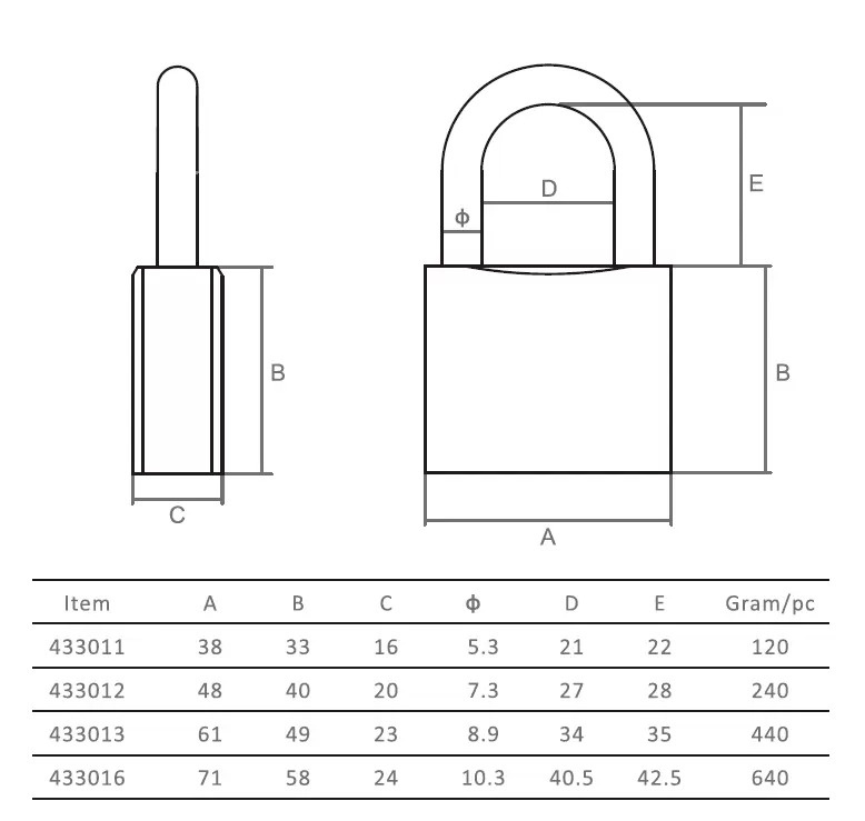Замок оснащен стандартной полукруглой дужкой, изготовленной из нержавеющей стали, что делает его устойчивым к механическим воздействиям. Чугунный корпус гарантирует прочность и долговечность, а компактный дизайн делает замок универсальным в применении.