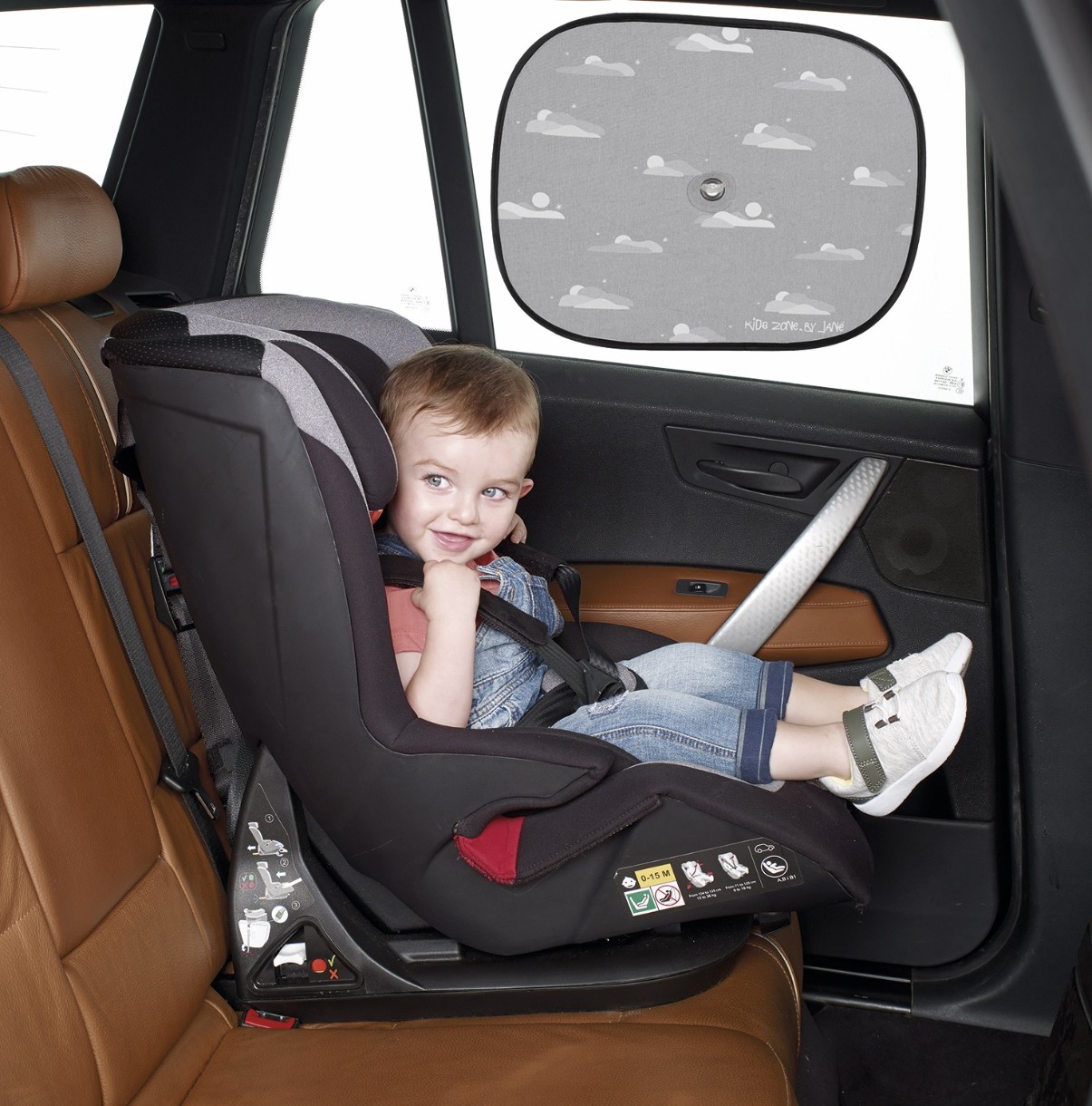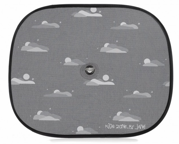 Складная шторка серого цвета 050293 U05. Новая модель, 2 шт. в упаковке, модель 50293 от бренда Jané, очень быстро собирается в ультракомпактном виде и крепится с помощью центральной присоски к стеклу автомобиля.