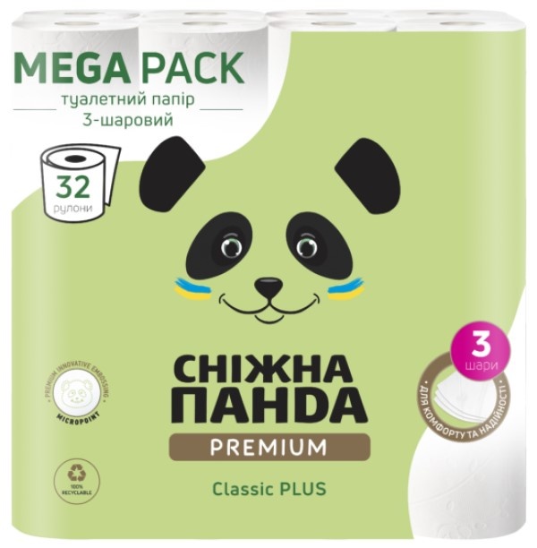 Туалетная бумага Снежная Панда Premium Classic Plus 3 plies 32 rolls