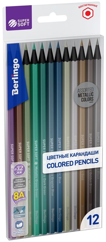Набор цветных карандашей Berlingo SuperSoft Metallic 12pcs
