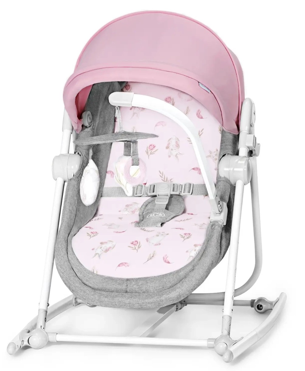 Детский шезлонг-качалка Kinderkraft Nola сочетает в себе аж 5 функций! Nola — это продукт, который растет вместе с ребенком. Уже с первых дней жизни ребенка, продукт выполняет роль детской кроватки и колыбели. Она растет вместе с ребенком и меняется в зависимости от потребностей, становясь люлькой, качалкой или креслом. Дуга с игрушками на некоторое время займет внимание малыша, а у родителей появится возможность заняться ежедневными делами.