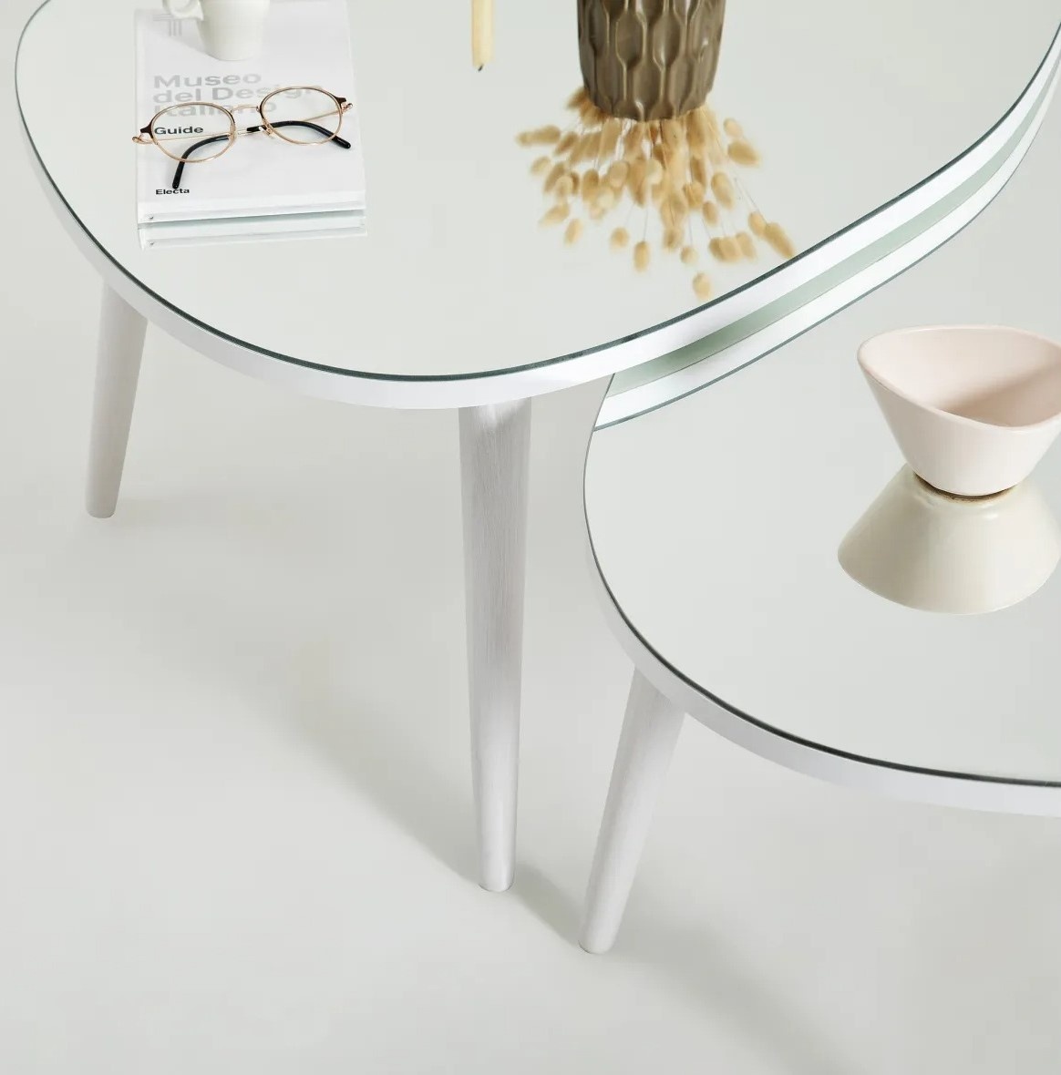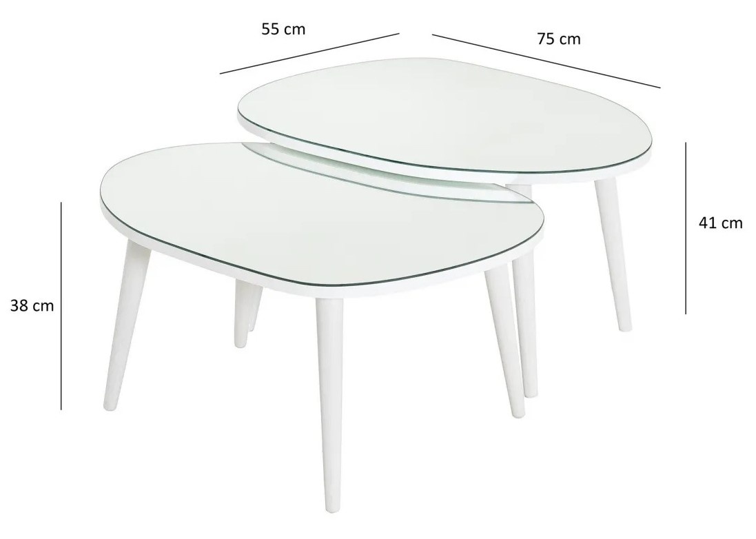 Современный и аккуратный дизайн делает эти столики воплощением стиля. Столешницы из 100% закалённого стекла создают ощущение утонченности, а основание из древесных плит, покрытых 100% меламином, обеспечивает долговечность и устойчивость. Конструкция гармонично подходит для различных интерьеров и легко вписывается в уже существующую обстановку.