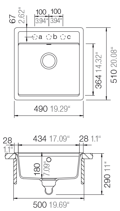Размер мойки490х510 мм