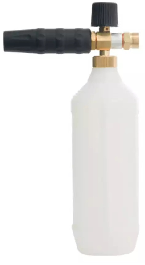 Этот набор для подачи пеноматериала объёмом 1 литр, работающий под высоким давлением, обеспечивает более быстрое и эффективное распределение моющего средства, чем при использовании мойки низкого давления. Он подключается к пусковому пистолету мойки высокого давления с помощью резьбового соединения.