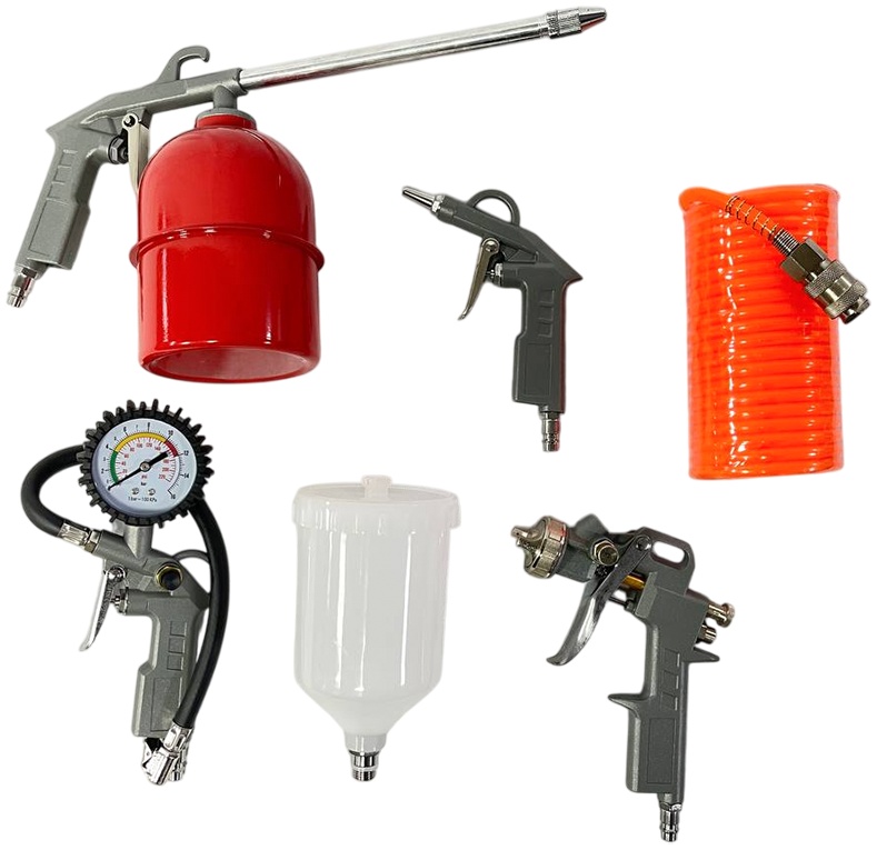 Demetra 5PCS — это универсальный набор для работы с компрессором, подходящий для гаражей, мастерских и домашних задач. Комплект включает всё необходимое для работы с сжатым воздухом.