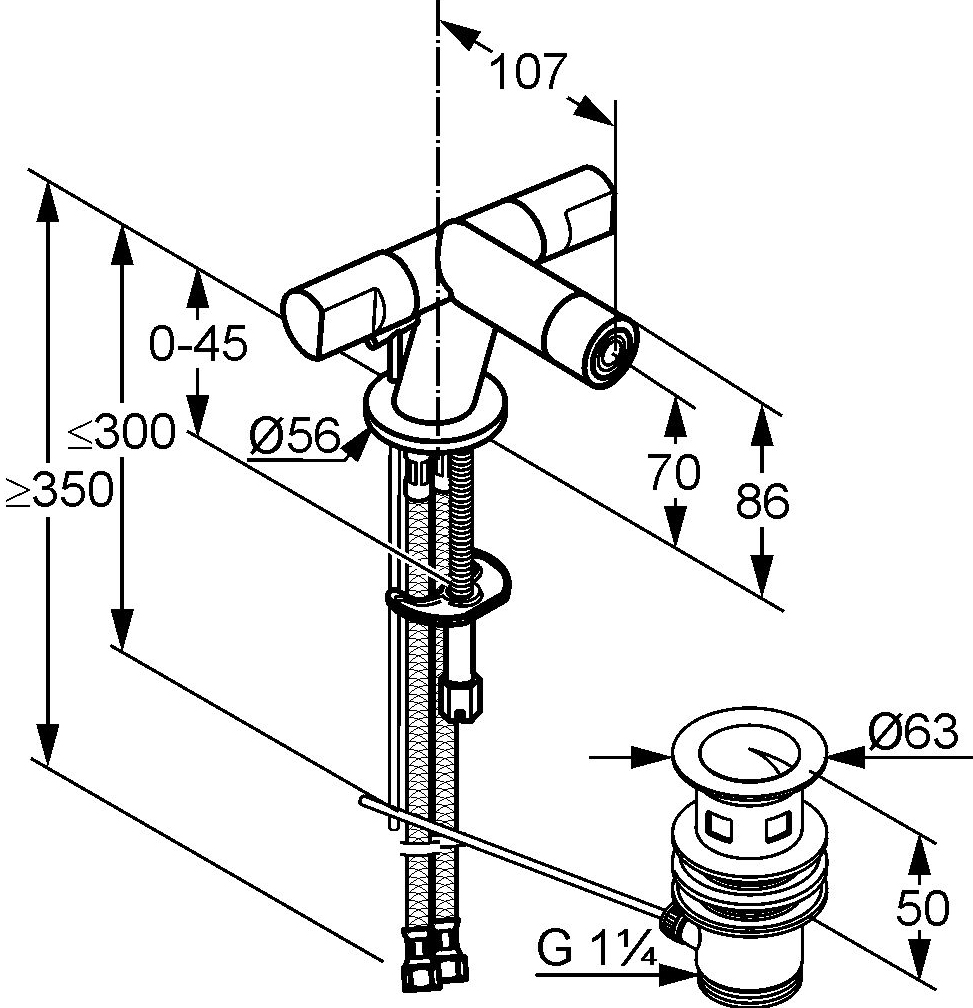 — донный клапан G 1 1/4;