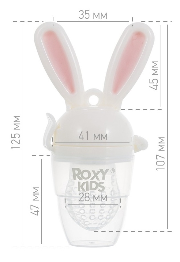 Ниблер для ввода первого прикорма BUNNY TWIST от ROXY-KIDS безопасен и удобен в использовании. С его помощью можно начать вводить в рацион питания малыша овощи, фрукты и печенье. Малыш сможет кушать самостоятельно без риска подавиться. Сначала нужно поместить в ниблер кусочки определенной еды, а затем закрепить контейнер на ручке до щелчка. После этого малыш сможет всасывать содержимое по аналогии с пустышкой, привыкая к вкусу повседневной взрослой еды. В ниблере предусмотрен поршень, которым можно протолкнуть еду внутри сеточки при вращении ушек ниблера. В комплект входит прочная силиконовая сеточка, которая не боится первых зубок малыша. Она безопасна для детского здоровья, ее очень легко мыть, а также можно докупить отдельно в случае износа. У ниблера есть колпачок, который позволит взять ниблер с собой на прогулку или в поездку. Ниблер поможет уменьшить боль от прорезывания зубов с использованием охлажденных фруктов или овощей при прикорме.