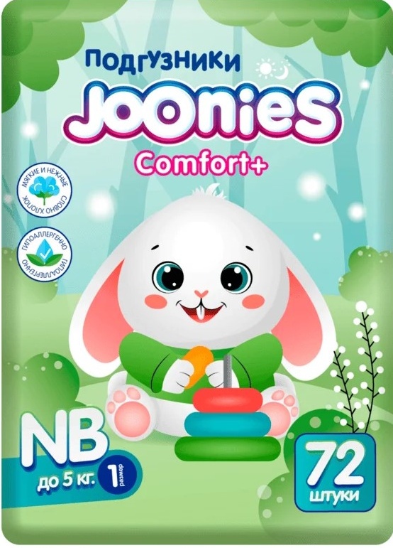 Подгузники Joonies Comfort NB — практичный и надёжный выбор для родителей, которые ценят комфорт и оптимальную защиту малыша.