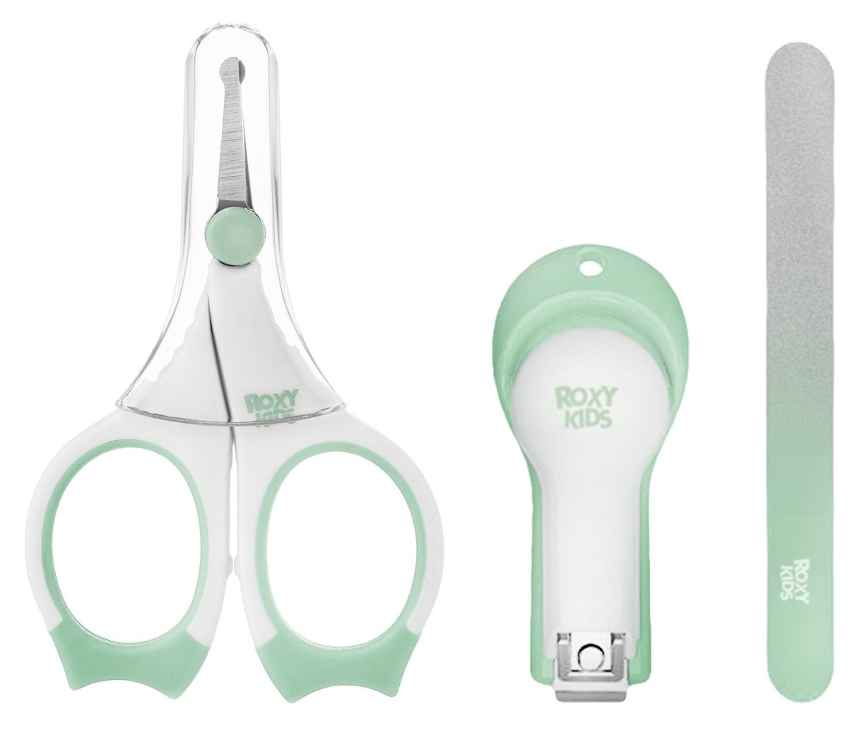 Маникюрный набор для новорожденных и малышей 3в1 от ROXY-KIDS поможет полноценно ухаживать за первыми ноготочками малыша. Закругленные ножницы идеально подходят для мягких и маленьких ногтей малышей, мелкозернистая пилочка устранит неровности ногтя после стрижки, кусачки помогут выполнить аккуратный и ровный срез ногтя. Подстригайте ноготки, когда они отрастают на 1 мм, чтобы малыш себя не поранил.