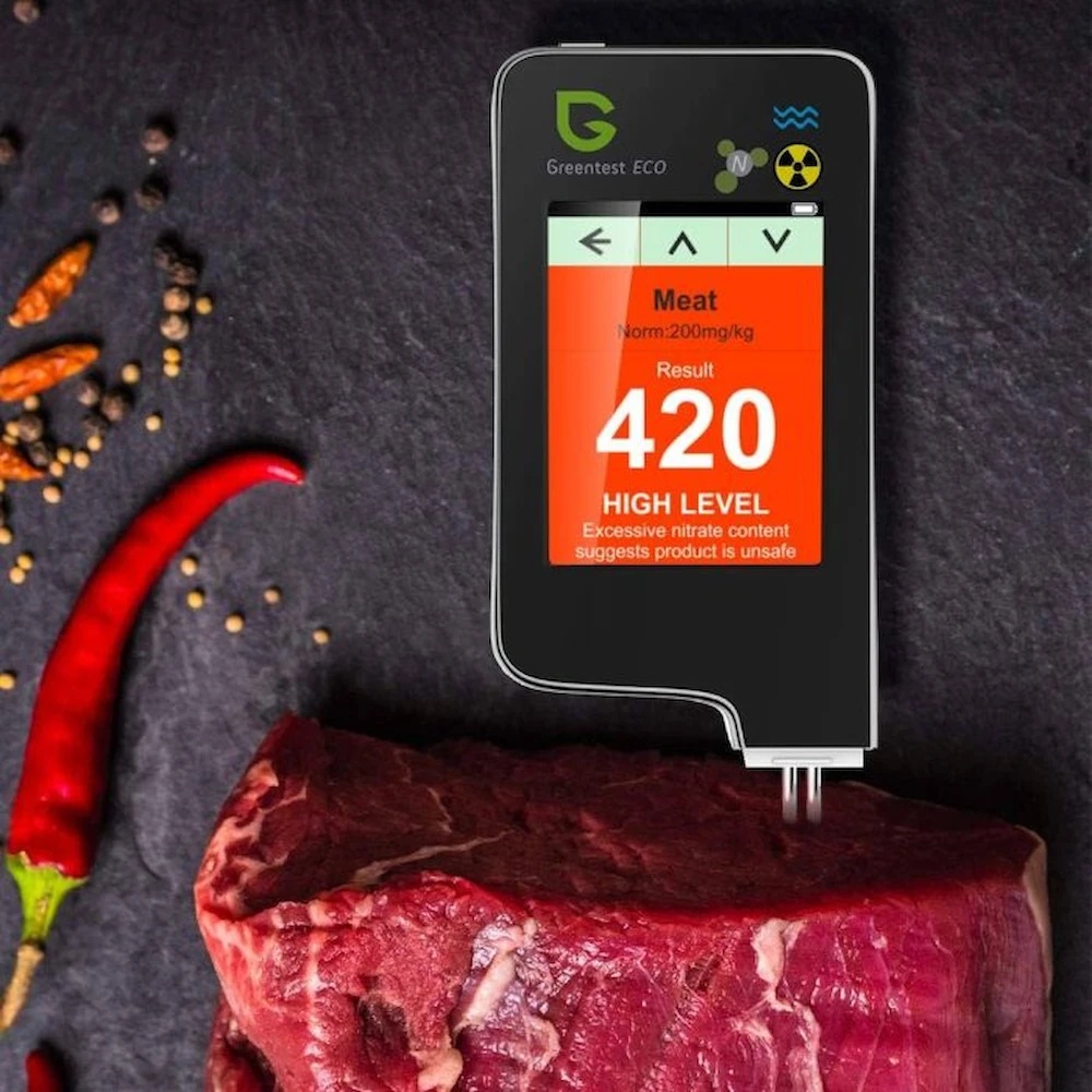 Greentest Eco 6 — это портативный многофункциональный тестер, предназначенный для измерения уровня нитратов в продуктах питания, общей минерализации (TDS) воды и уровня радиационного фона. Он оснащен сенсорным экраном и Bluetooth для подключения к мобильному приложению.