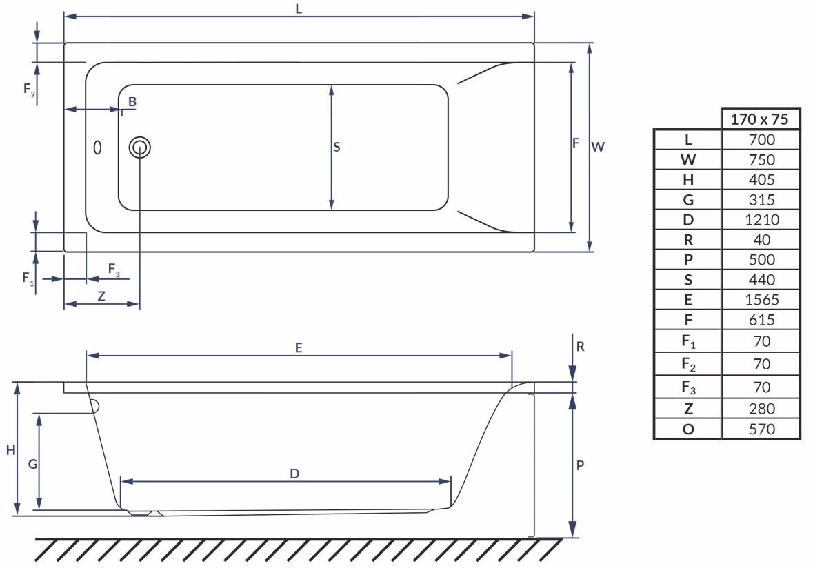Ванна Banoperito Classic Mono 170x75 (113569)