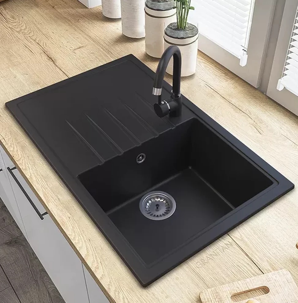 Кухонная мойка Granitan ERIS 785×495 мм — это стильная и надёжная гранитная мойка с одной вместительной чашей, идеально подходящая для современной кухни. Она изготовлена из прочного композитного материала гранит высокого качества, который обеспечивает устойчивость к царапинам, ударам и перепадам температур при ежедневной эксплуатации.
