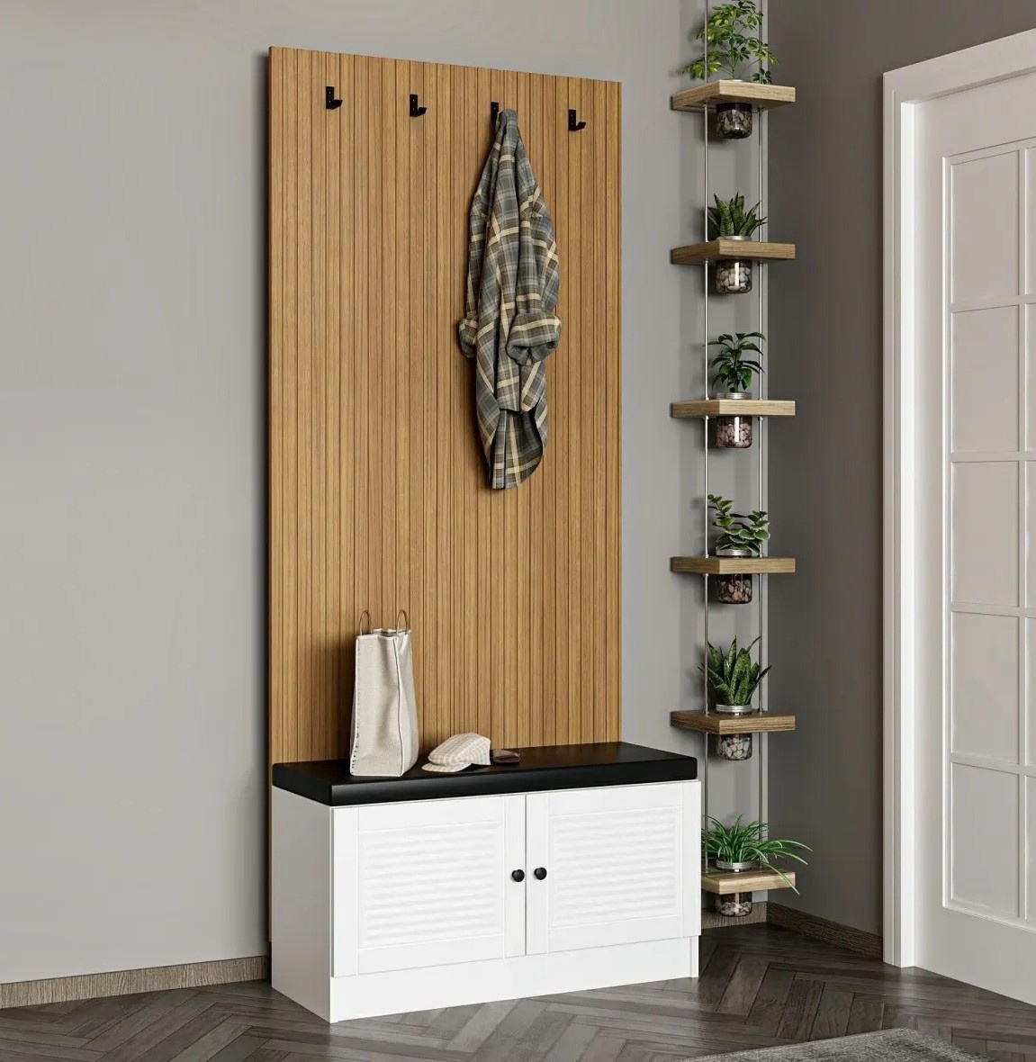 Произведите впечатление на гостей с помощью изысканной и аккуратно выполненной стойки для холла. Благодаря точной обработке и продуманному дизайну эта деталь мгновенно улучшает атмосферу прихожей. Современное исполнение и аккуратные линии делают стойку гармоничным дополнением любого интерьера.