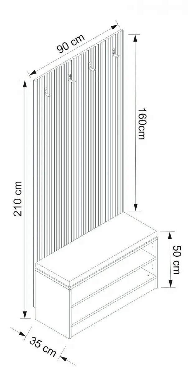 Благодаря продуманным размерам стойка предлагает достаточно места для хранения, помогая поддерживать порядок. Ширина 90 см, высота 210 см и глубина 35 см позволяют удобно разместить верхнюю одежду, аксессуары и другие необходимые предметы. Прихожая становится упорядоченной и приятной для входа.