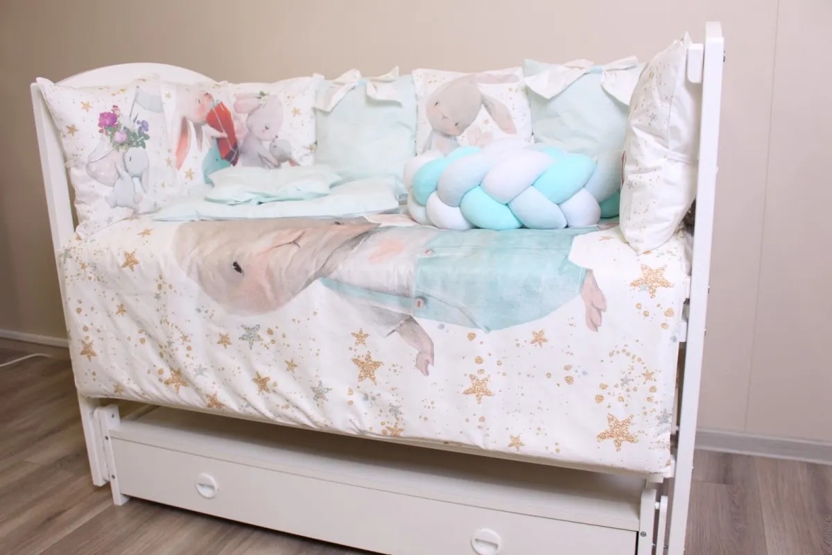Комплект в кроватку 8 предметов из хлопка PernaMea окружит вашего малыша теплом семейного уюта. Природные оттенки и спокойные тона сатина убаюкивают перед сном. Комплект подходит для спального места 120х60 см.