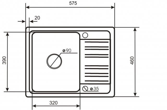 Размер мойки575x460 мм