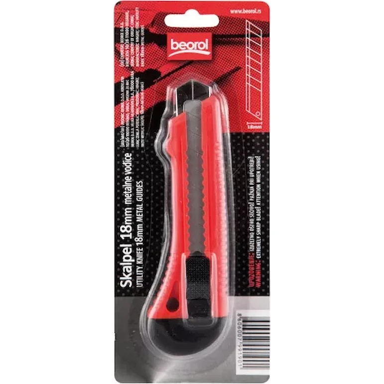 Универсальный нож, 18 мм, с металлической оболочкой — это высокоэффективный инструмент, предназначенный для точной резки различных материалов. Нож имеет длину 150 мм, ширину лезвия 18 мм и толщину лезвия 0,5 мм, что обеспечивает исключительную точность и контроль во время работы. Лезвие из углеродистой стали гарантирует длительный срок службы и остроту, а металлические направляющие и ручка с ПВХ-покрытием обеспечивают удобный и надежный захват.