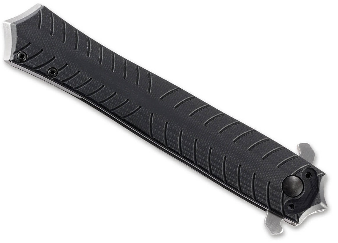Рукоять выполнена из G-10 — это композитный материал на основе стеклоткани и эпоксидной смолы. Он является очень прочным, влагонепроницаемым и ударостойким. Прекрасно поддается обработке и окрашиванию. Используется повсеместно на всех современных ножах.