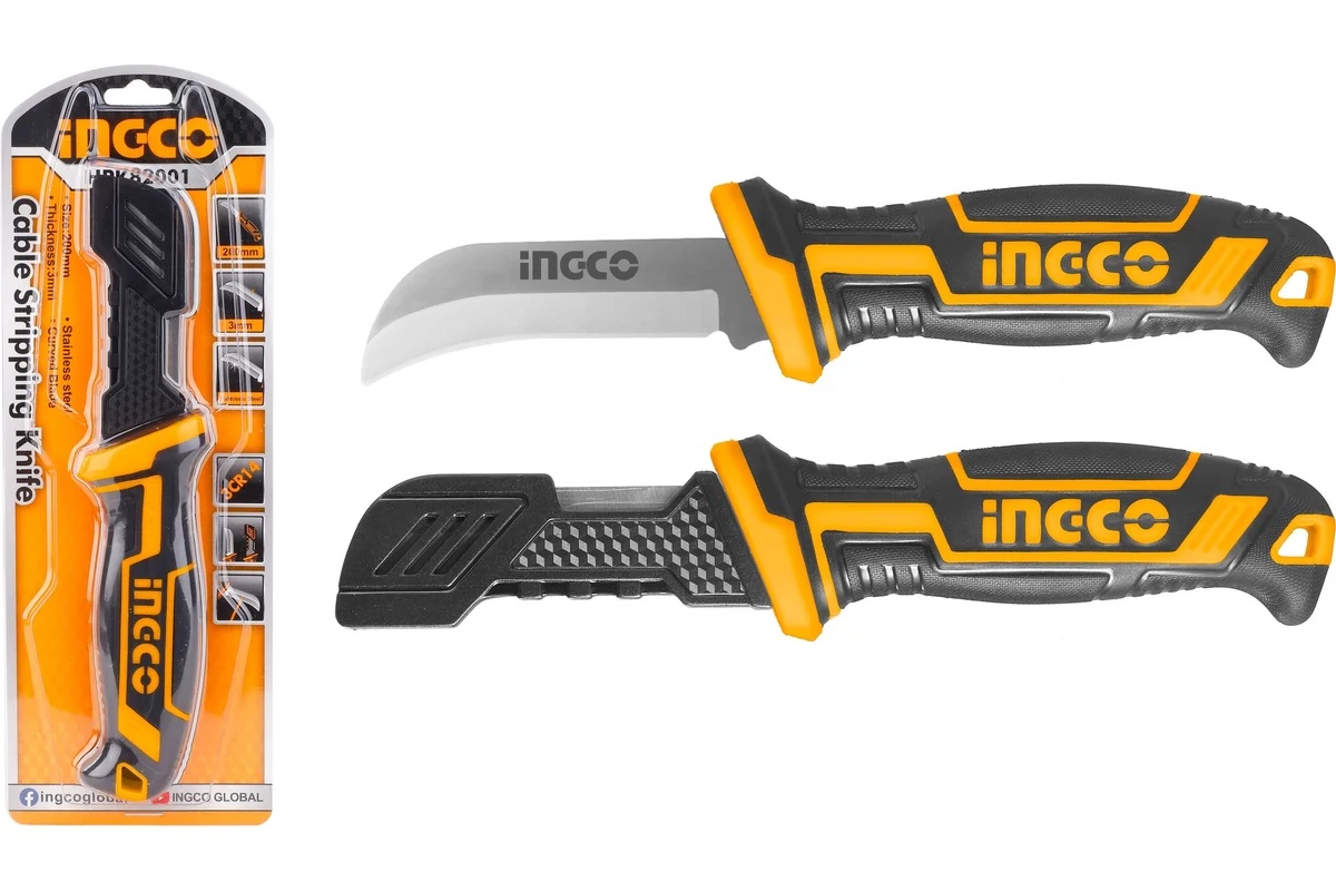 Монтажный нож INGCO HPK82001 длиной 200 мм предназначен для точной резки изоляции и подготовки кабелей при электромонтажных и установочных работах. Изогнутое
