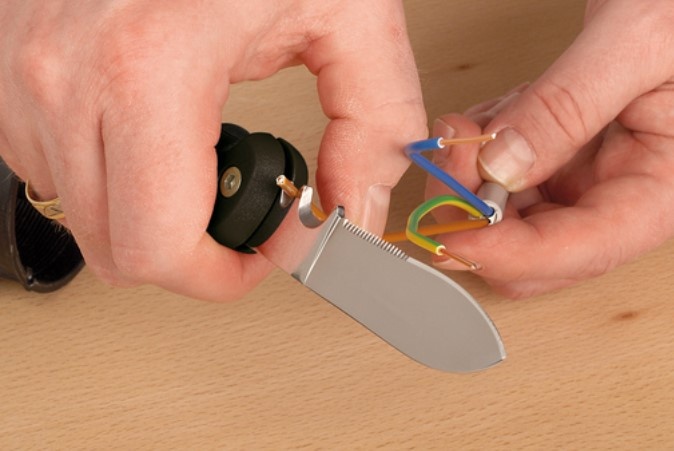 Складной кабельный нож – надежный помощник при многих видах электромонтажных работ. Вы можете использовать его, чтобы безопасно разрезать, надрезать или зачищать кабели. Встроенные канавки для зачистки идеально подходят для снятия изоляции с кабелей меньшего диаметра. Двухзонное лезвие используется для больших диаметров. Зубчатая зона позволяет разрезать защитное покрытие, чтобы на следующем этапе его можно было снять с помощью заточенной зоны лезвия. Это изменяет производительность резки, чтобы не повредить внутреннюю часть кабеля. Эргономичная пластиковая ручка обеспечивает удобство использования. Функция складывания позволяет компактно и безопасно хранить и транспортировать нож.