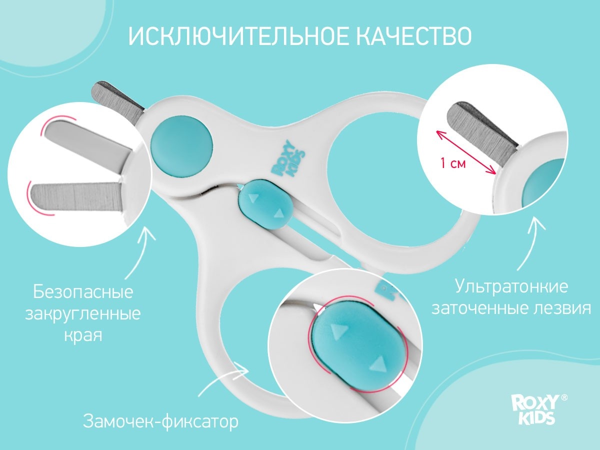 Маникюрные ножницы ROXY-KIDS разработаны для ухода за ногтями новорожденных с первых дней жизни. Ноготки младенцев настолько мягкие, что их могут срезать лишь действительно тонкие лезвия. В производственный процесс ножниц ROXY-KIDS включена дополнительная заточка лезвий, благодаря чему они имеют толщину 0,4 мм. Закругленная форма и небольшой размер лезвий делают ножницы безопасными в работе, а замок на ручках не позволит ребенку открыть их самостоятельно. Удобная форма ручек обеспечивает надежный захват. Подстригайте ноготки, когда они отрастают на 1 мм, иначе малыш может себя поцарапать. Ножницы с короткими закругленными лезвиями позволят вам аккуратно, быстро и безболезненно подрезать ноготки новорожденного. Маникюрные ножницы ROXY-KIDS изготовлены из нержавеющей стали с применением новейших технологий производства.