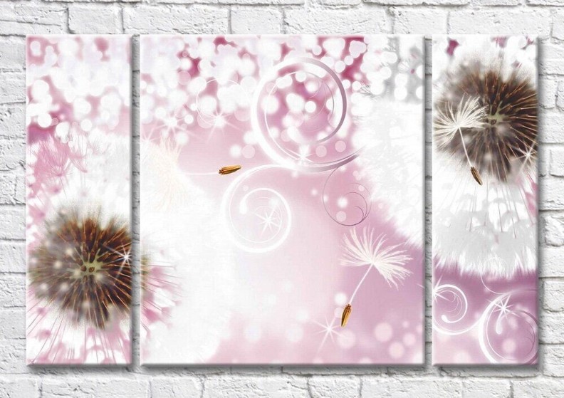 Картина Magic Color Dandelions and curls on a Pink background (3565212)