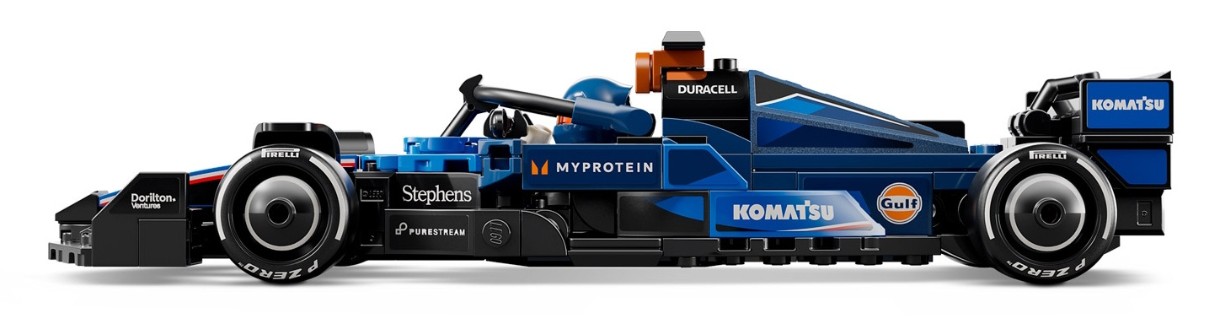 Автомобиль модели F1 оснащен кокпитом, который открывается при поднятии балки, задним антикрылом и подвеской на поперечных рычагах, спонсорские наклейки и более широкие задние шины с надписью “Pirelli”. К сборному автомобилю Формулы-1 также прилагается минифигурка водителя, одетая в гоночную форму Williams, и шлем с крыльями, который можно разместить в кабине.