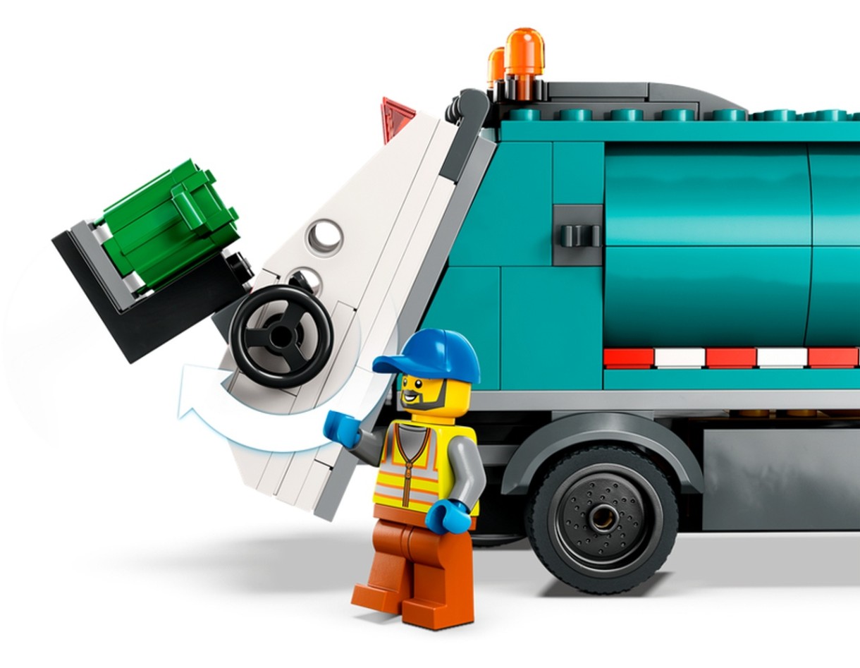 Этот набор Лего Сити Мусоровоз (60386) включает в себя множество реалистичных функций, в том числе центр утилизации с 3 контейнерами. Грузовик оснащен опрокидывающейся платформой для опорожнения контейнеров и поднимаемой платформой для разгрузки. Просто добавьте 3 минифигурки и фигурку кота, и пусть начинается веселье.