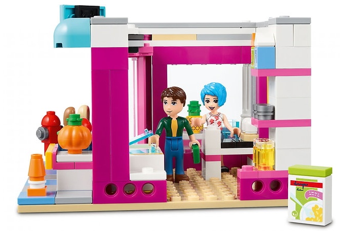 Идея веселого подарка для детей от 8 лет — этот универсальный игровой станет замечательным подарком на день рождения для поклонников LEGO® Friends и для детей, которые любят играть в магазин и изменять свои игрушки. Внушительный игровой набор — эта масштабная модель высотой более 24 см, шириной 39 см и глубиной 16 см станет весьма внушительным украшением интерьера. Множество творческих аксессуаров — в комплект входит множество игрушек для создания творческих историй. Среди них лейка, кофеварка, продукты для магазина, палочки для еды, суши, фен и парики.