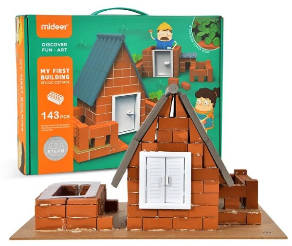 Этот набор включает настоящие кирпичи и растворимый в воде цемент, предлагая детям аутентичный и удовлетворяющий опыт строительства. В комплект входят разнообразные кирпичи и строительные элементы, а также пошаговое руководство, которое поможет детям научиться строить собственный дом. Особенностью набора является то, что цемент растворяется в воде, позволяя детям многократно перестраивать дом. Это добавляет дополнительный элемент веселья и творчества в процесс строительства, предоставляя возможность экспериментировать с различными дизайнами и планировками.
